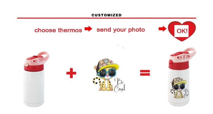 350ML Children Kids Thermos DIY LOGO customize Photo Name Colorful Printing Full Around Bottle Creative Gift School Kindergarten